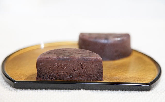 同商品は2層に分かれていて、上部の数センチが粒あんの層で、そこから下はショコラテリーヌです。ショコラテリーヌは、ねっとりとした食感で、カカオの香りが楽しめます。濃厚ですが、甘すぎずちょっぴりビターな大人の味が◎。