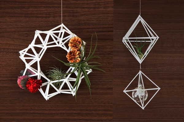 「フェルトのツリーは、大きめでも畳んで小さく収納できるのでオススメです。オーナメントも縫いつけてあるのではなくて安全ピンでランダムに付けてあるだけなので、毎年違ったオーナメントで楽しめます。作り方は、ツリー型に裁断したフェルト3枚を縫い合わせ立体にしたら、オーナメントを取りつけて出来上がり。飾るときは、重さがある花瓶やおもりをつけたペットボトルなどの中心に突っ張り棒を固定し、ツリーの高さに長さを調節したら、そこにツリーをかぶせるだけ。ぜひ、作ってみてください!」(山崎由樹子さん)