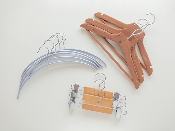 スーツ用には肩の厚みのあるハンガーやパンツ用のハンガー、シャツやブラウス用には薄型のハンガーなど、いろんな種類のハンガーがあります。洋服をたくさんお持ちの方なら薄型のハンガーを使えばたくさんの収納ができますが、ハンガーをたくさん購入しないといけなくなります。“ハンガーを購入してまで大切にしたい”と思えるお洋服だけがクローゼットに入っている状態が理想的だと思います。