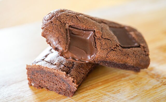 まずは「焼きチョコブラウニー」(税込138円)。外はサクッと中はしっとりのチョコレート生地にキューブチョコをトッピングし、そのままでも冷やしてもおいしいものです。冷蔵庫でしっかりと冷やすと、キューブチョコがパキッとした食感に仕上がり激ウマ! 意外と甘さが抑えられているのもうれしいポイントですね。