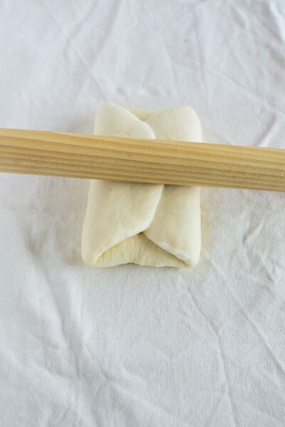 パンマットの上に丸めなおした生地をおき濡れ布巾を被せておく。