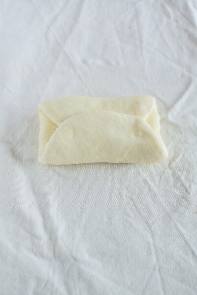 7.下から半分おる。真ん中で生地が少し重なる程度。