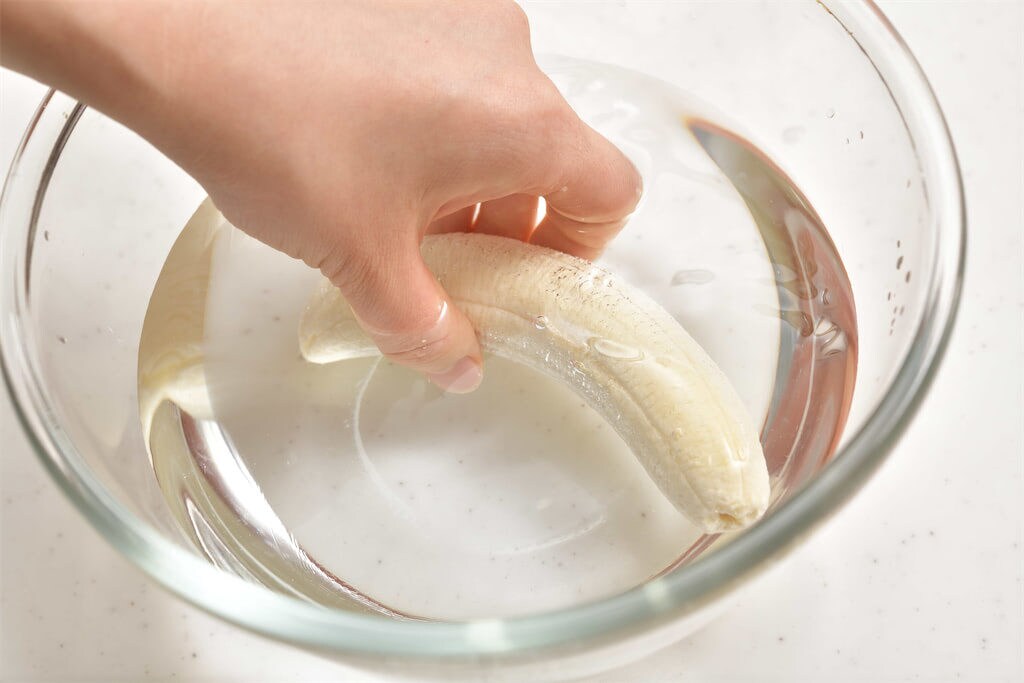 塩水の濃度は0.5%ほど。りんごの変色を防ぐときと同じ要領ですね!