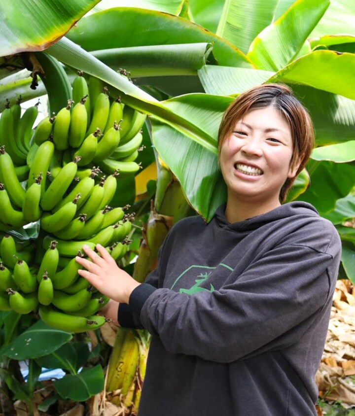 江戸時代から続く農家の生まれ。熊本県八代市で無農薬の国産バナナを栽培する。「バナナを通じて地域を盛り上げたい」という思いから、地域の保育園児を招待してのハウス見学や、地元酒造メーカーとバナナ酒の開発などもおこなう。