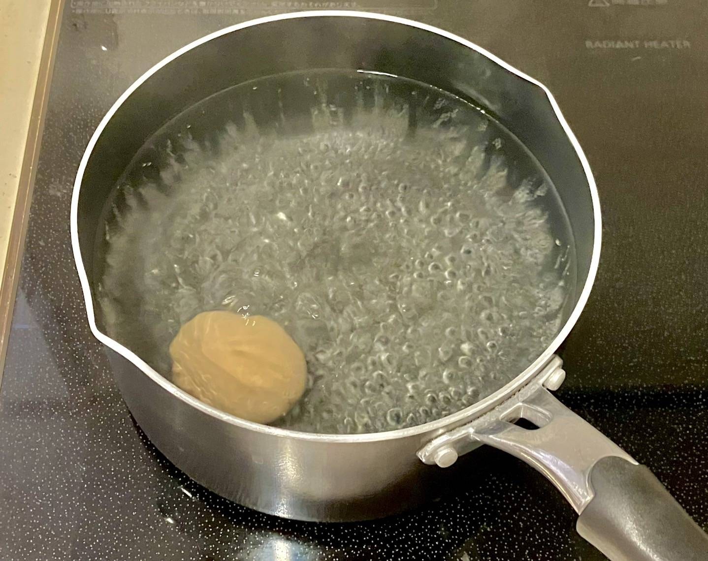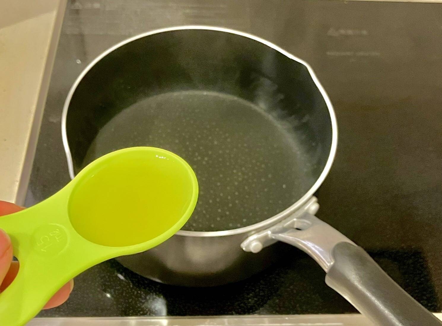 鍋に水を入れて沸騰したら、レモン果汁大さじ1杯を入れます。