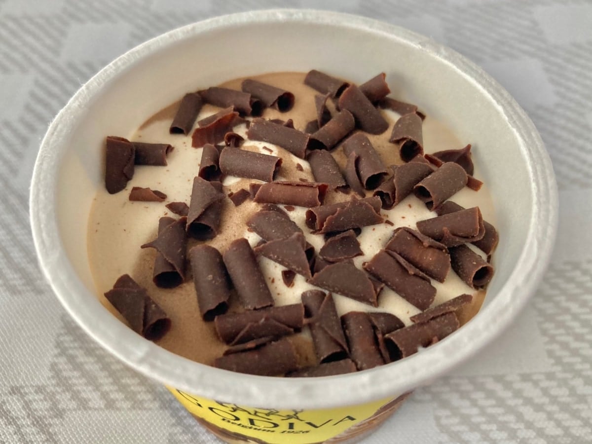 モンブランアイスとチョコレートアイスがマーブル状になった、ファミマ限定のゴディバコラボアイス。モンブランの風味はしっかり感じられる一方で、全体の甘さは控えめで後味はあっさりしています。トッピングのチョコレートチップは軽くパリッとした食感で、ほろ苦さが良いアクセントに。濃厚さよりもバランスを重視した仕上がりで、手軽にゴディバ気分を楽しめる一品です。