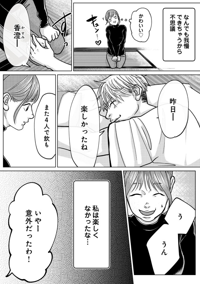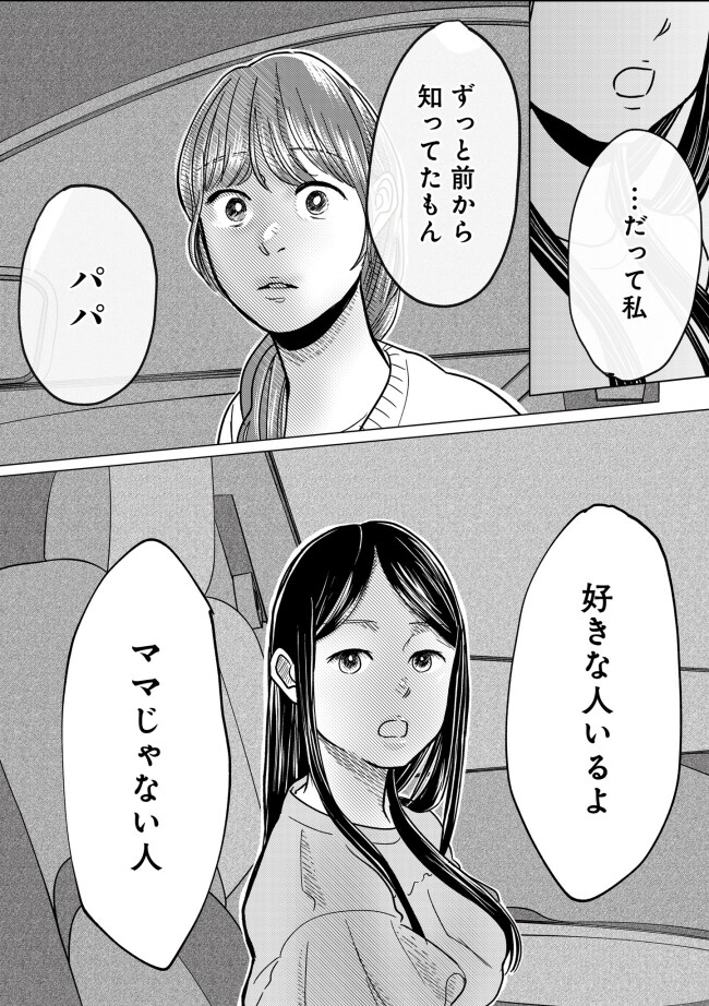 初恋の彼と運命的な再会を果たし、猛アタックのすえに結婚した香澄。毎日がしあわせ……と思っていましたが、現実は厳しかったようですね。そして娘からの衝撃発言。9歳というと、大人が思っている以上にいろいろなことを理解している年齢。妻ももちろんですが、子どもに悲しい思いや疑いを持つような感情にさせるようなことはしないでほしいですね。