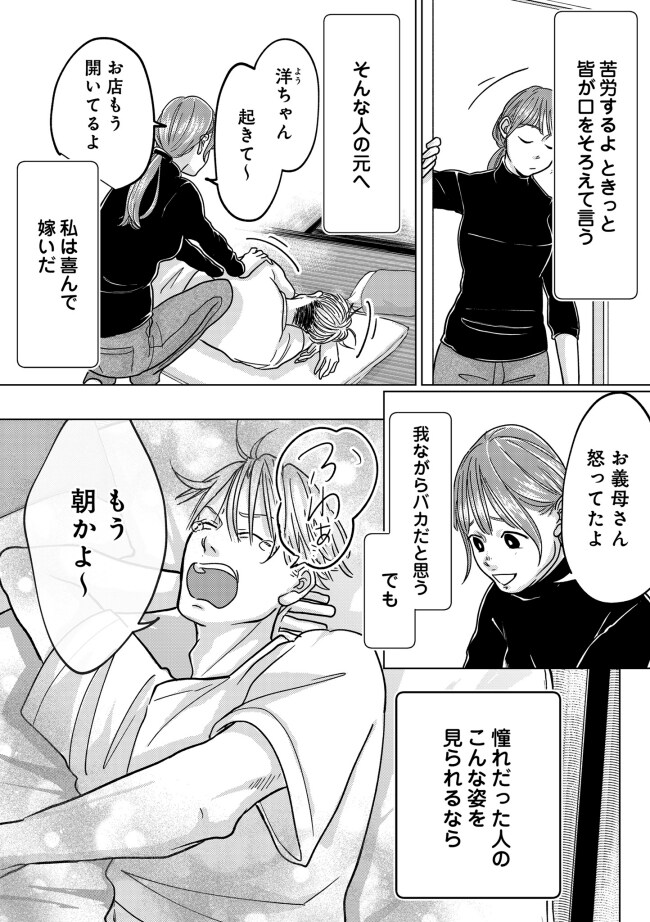 香澄の夫・洋介は、商店街で小さなクリーニング店を営む2代目。近所でもキツイ姑がいるとウワサされるような家だったにもかかわらず、喜んで嫁いた香澄。なぜなら、洋介が香澄の初恋だったから……。実は、高校時代に電車で見かけた洋介に香澄が一目惚れし、その後、偶然にも香澄の職場で再会。運命を感じた香澄が猛アタックし、2人は結婚しました。