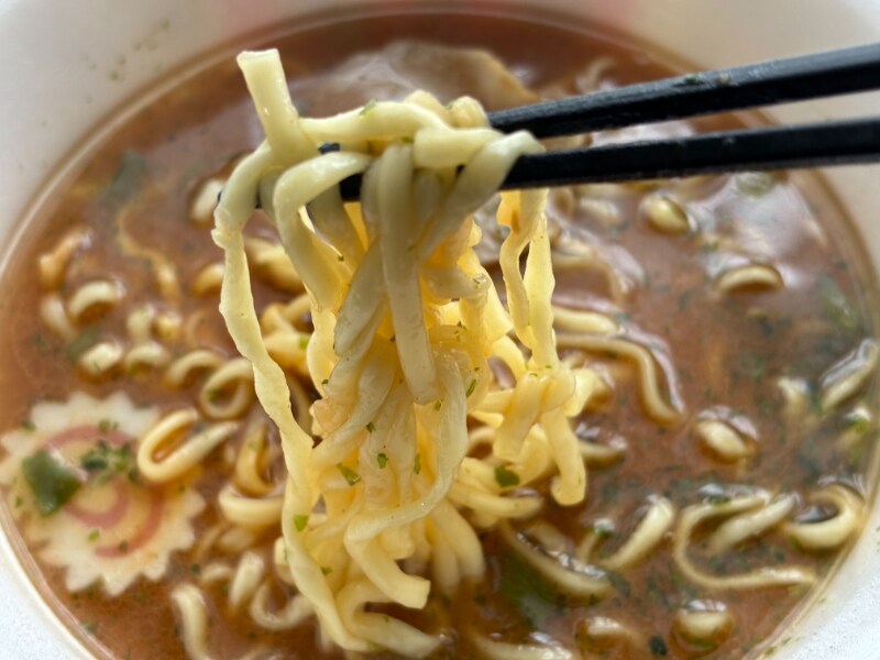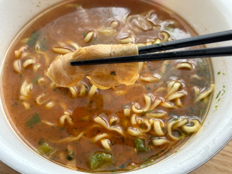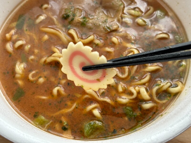 カップ麺なのに、しっかりと大きめのナルトやチャーシューが入っているのもうれしい!食べ応えのある1杯に仕上がっていました。