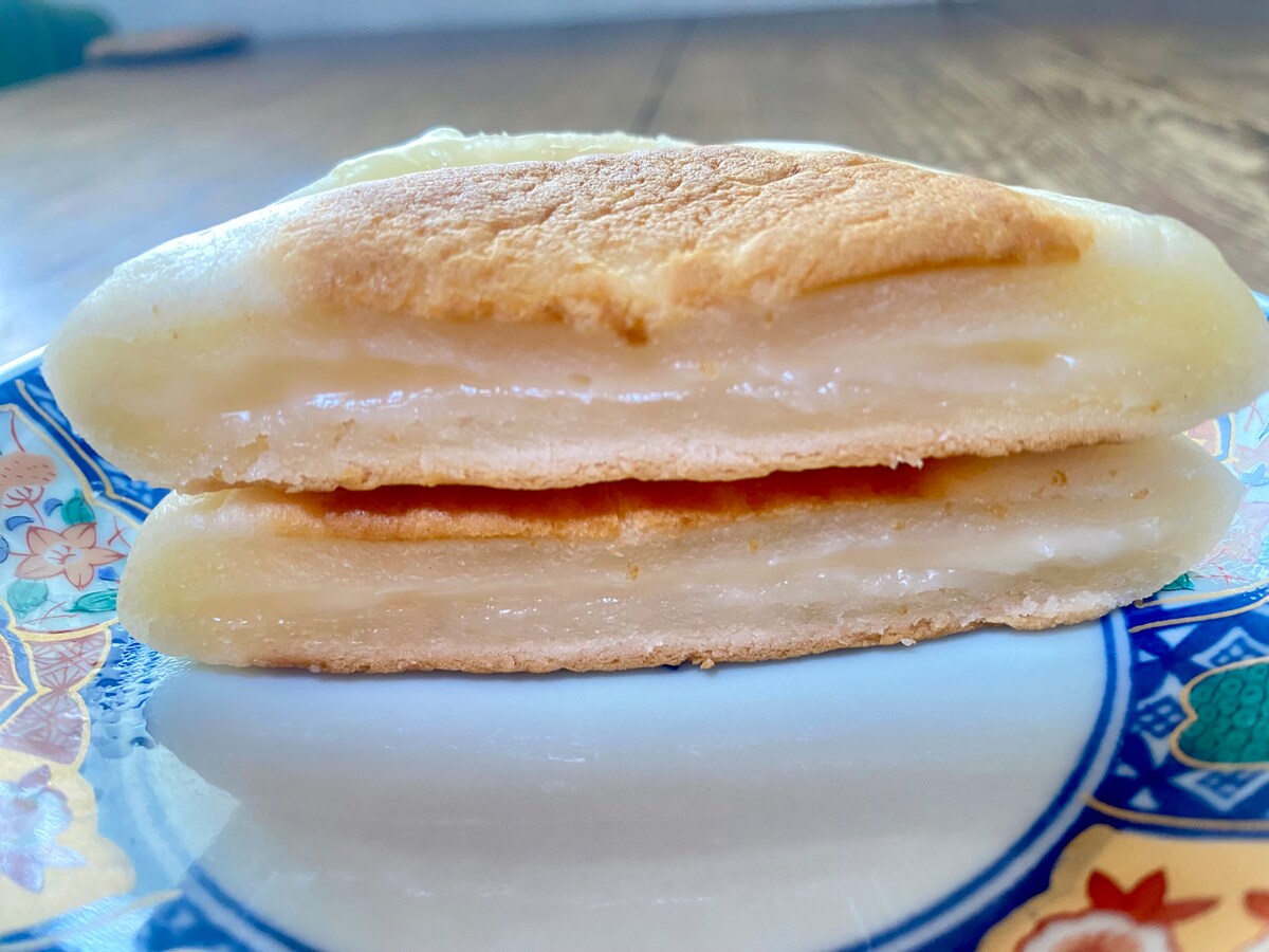 もっちりとした生地の中には2種類のチーズが入っていました。どうやら普通のチーズとクリームチーズの様子。
