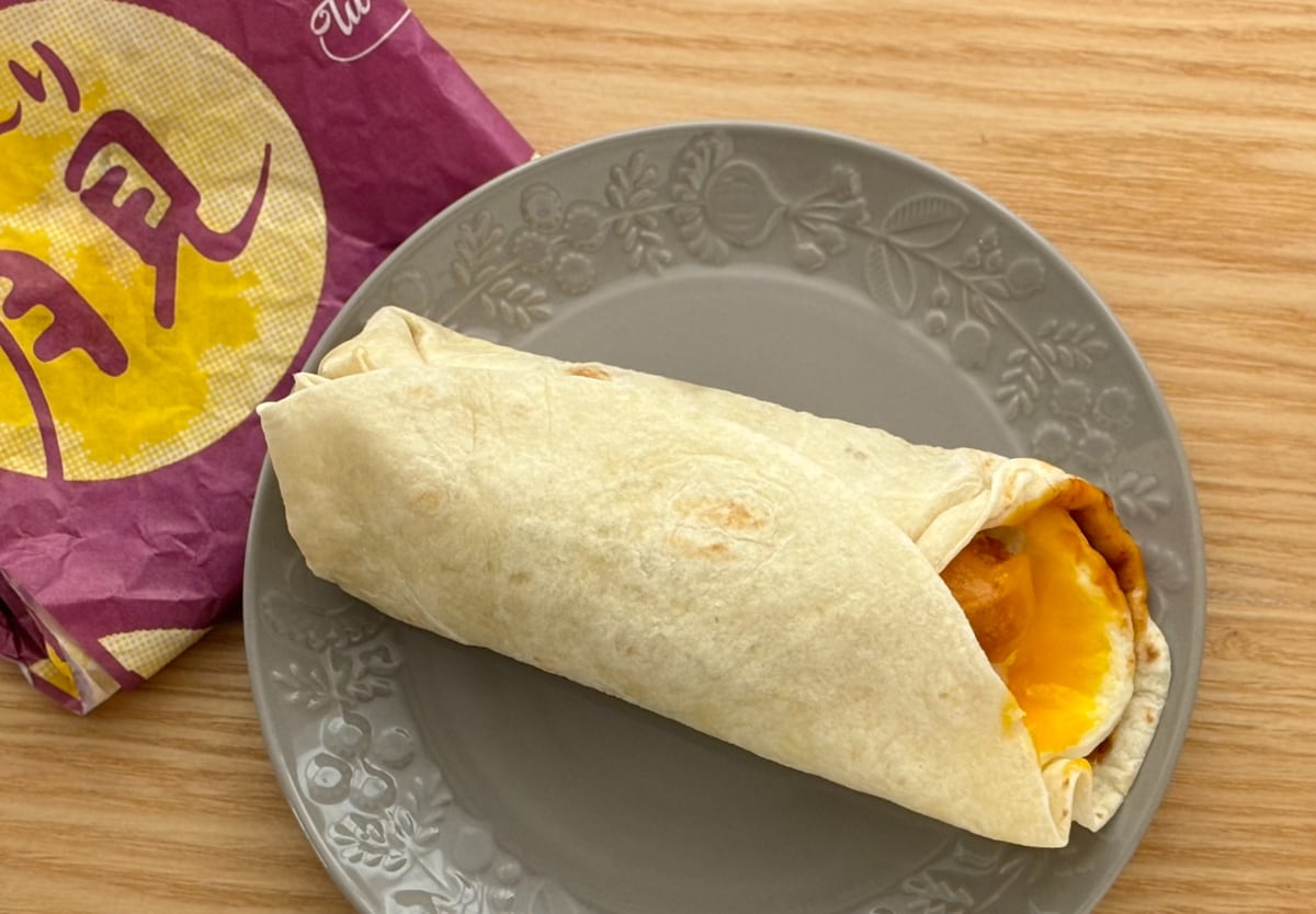 クリスピーチキンとシャキシャキレタス、目玉焼き風オムレツなどをトルティーヤ生地で包んだツイスター。