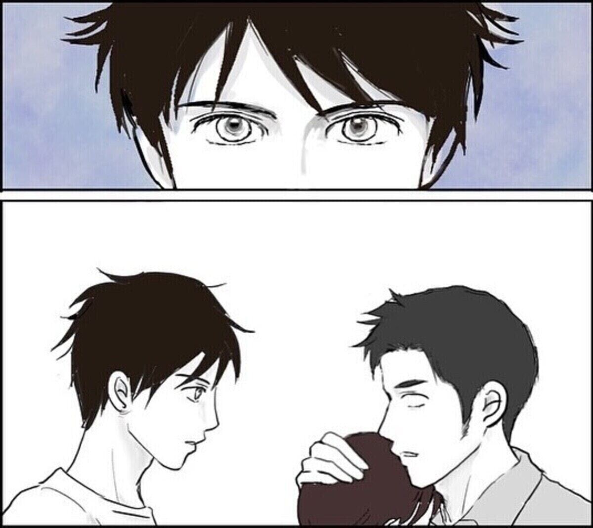 ふくこさんを抱きしめた夫の目の前に現れたのは、すでに寝たはずの息子。突然の登場に驚く夫に息子は「触っていいかお母さんに許可取った?」と聞きます。ふくこさんの教えである「同意なく女性に触ってはだめ」というのを忠実に守っている様子です。
