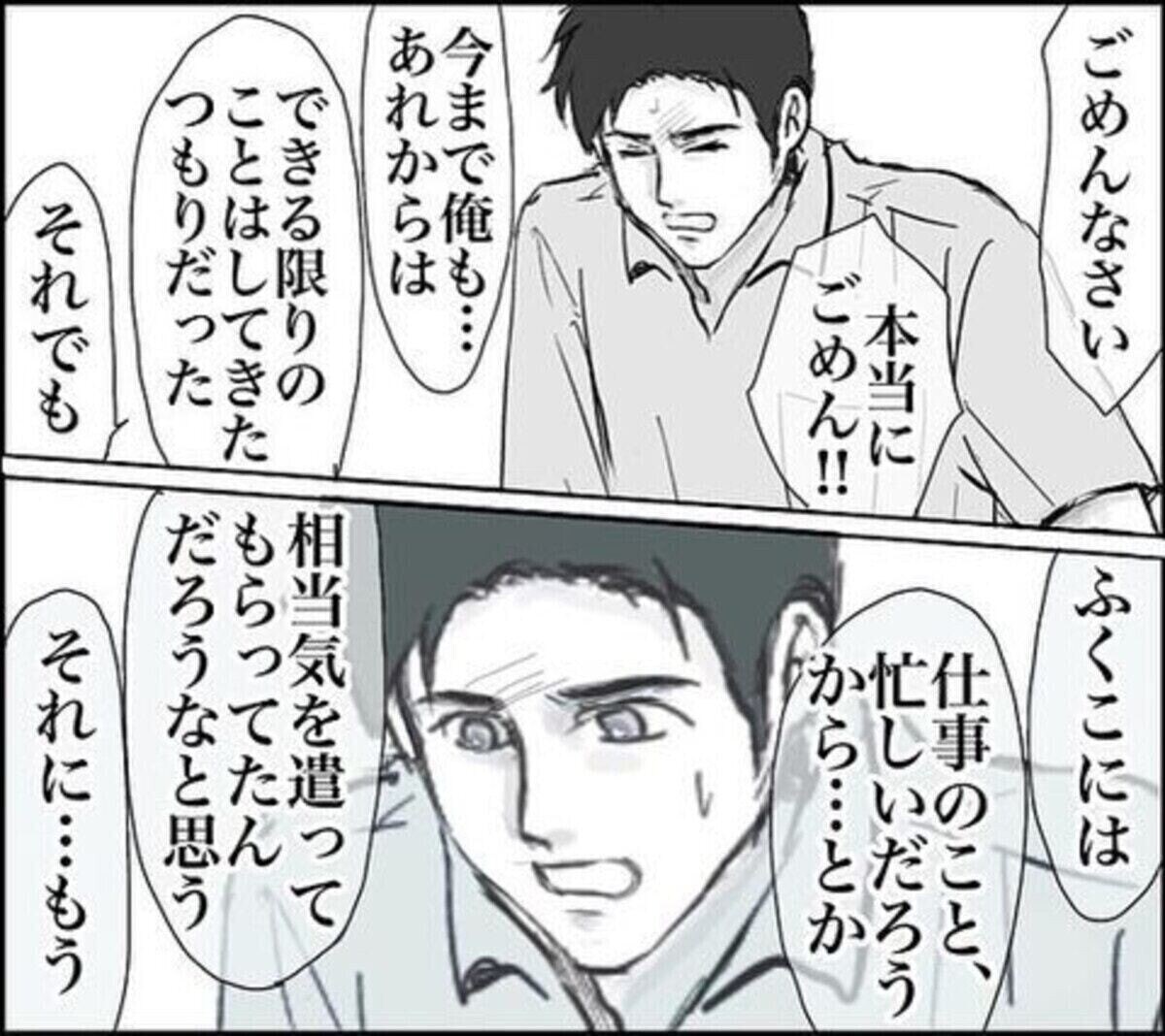 夫にとってはその場の勢いで出てしまった言葉なのかもしれませんが、母になったばかりの15年前のふくこさんにとっては相当悲しい言葉だったでしょうね。15年越しですが、ようやく謝罪を聞けたことは意味があったのではないでしょうか。