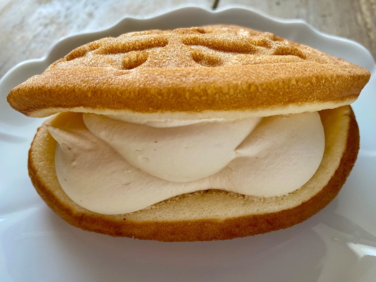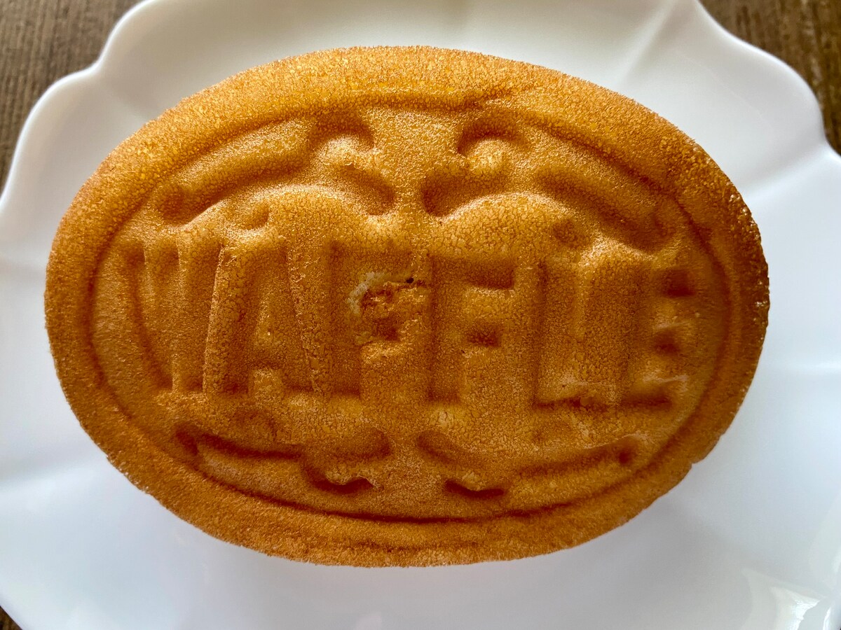 ワッフル生地には「WAFFLE」の文字が……!クリームに目が行きがちですが、生地もふわふわした感触です。