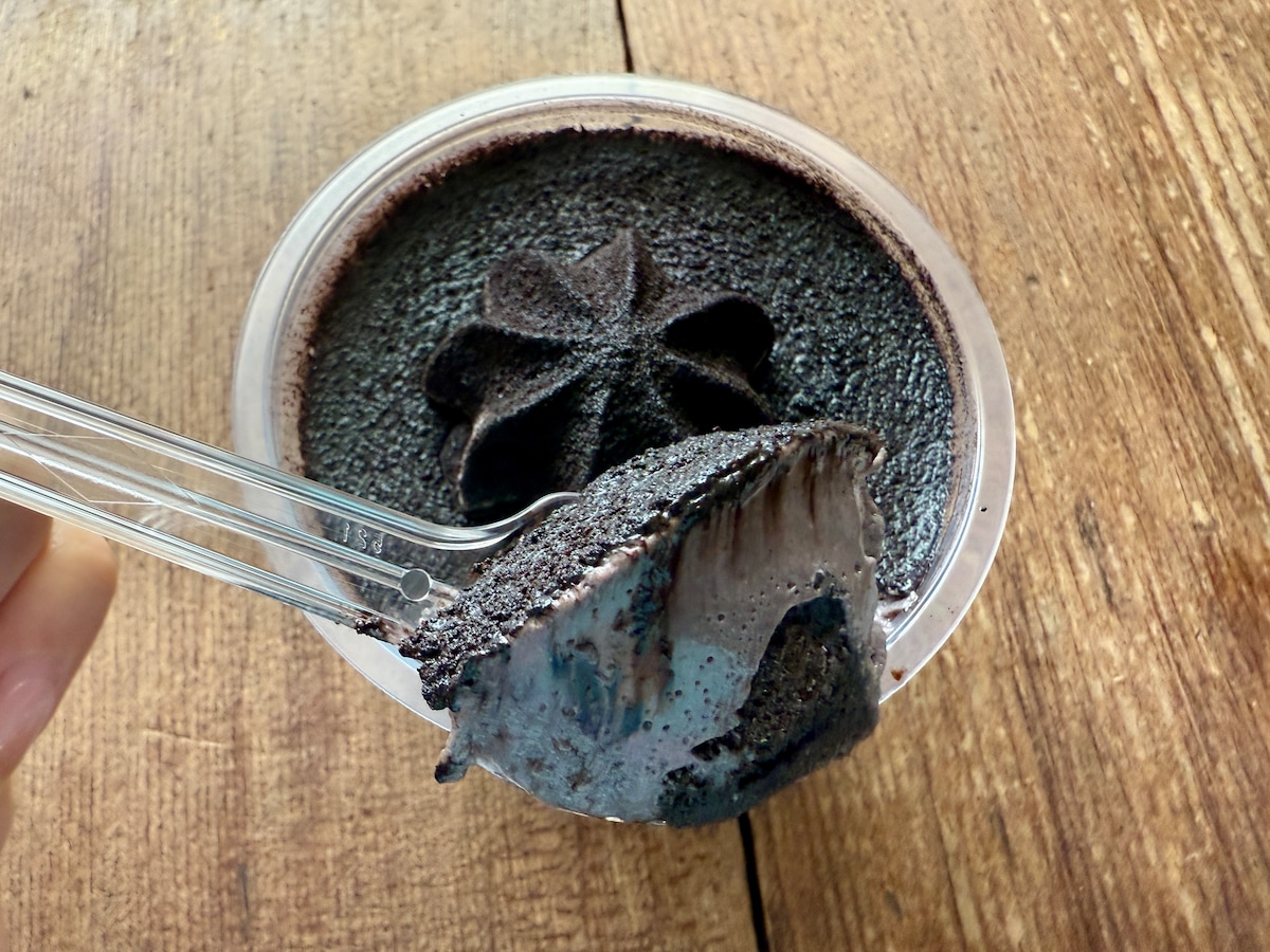 真っ黒な見た目とは裏腹にココアの優しい味わいが広がる♡