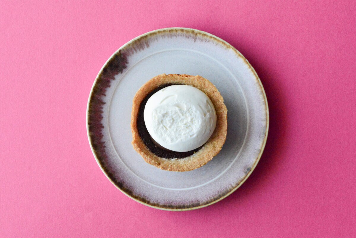 まずはタルト生地を少し食べてみました。しっとりとやわらかく、サクッと感は抑えめ。甘くておいしいタルト生地です。一番上にのせられたホイップクリームは、ミルク感を感じられつつさっぱりと軽やか。やさしい甘さで後味もすっきりしています。