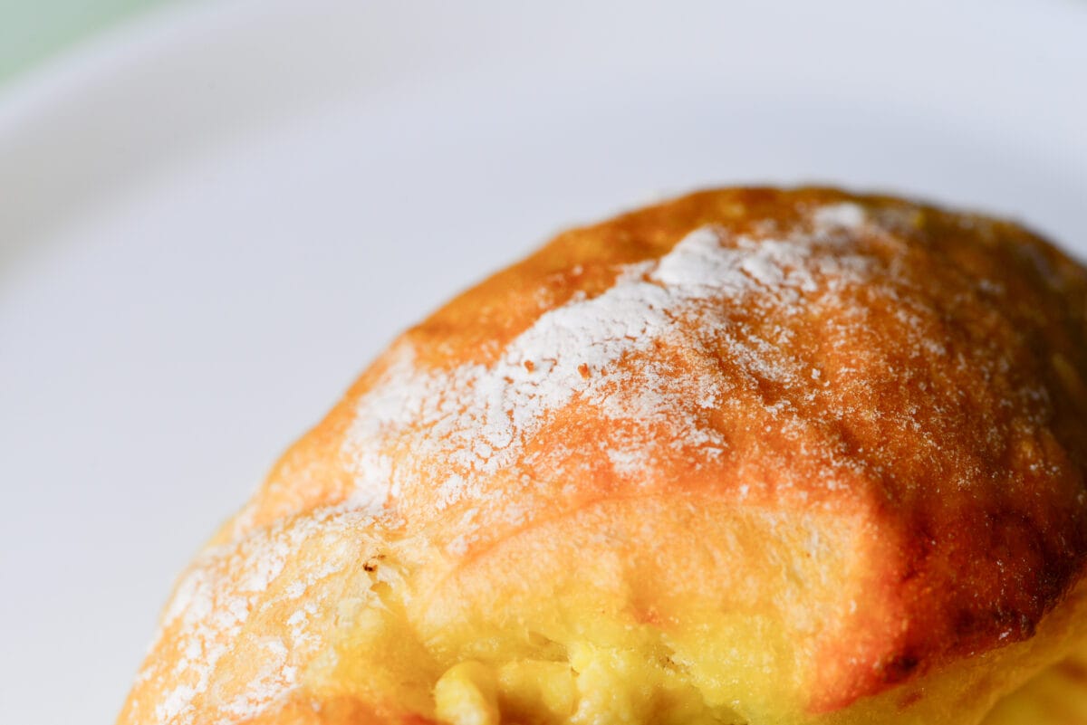 パン生地はもっちり、小麦の香ばしいかおりがしています。はじめは塩味が強いかと思いましたが、嚙むごとに甘さが出てきました。マヨネーズ風味のドレッシングは少し鼻に抜けるピリッと感がありました。辛味はないので子どもでも食べられますよ。