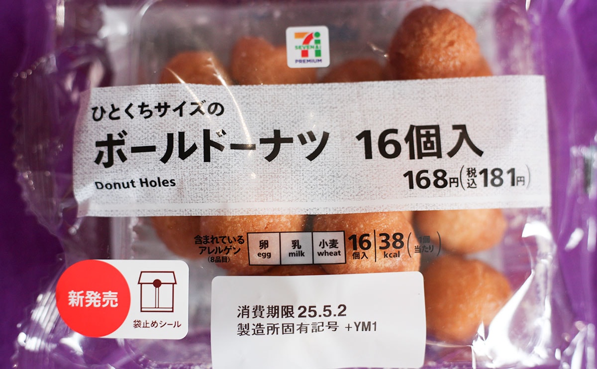 セブン-イレブンが2025年4月22日(火)以降順次発売したのが、「7P ひとくちサイズのボールドーナツ16個入」(税込181円)という新商品。