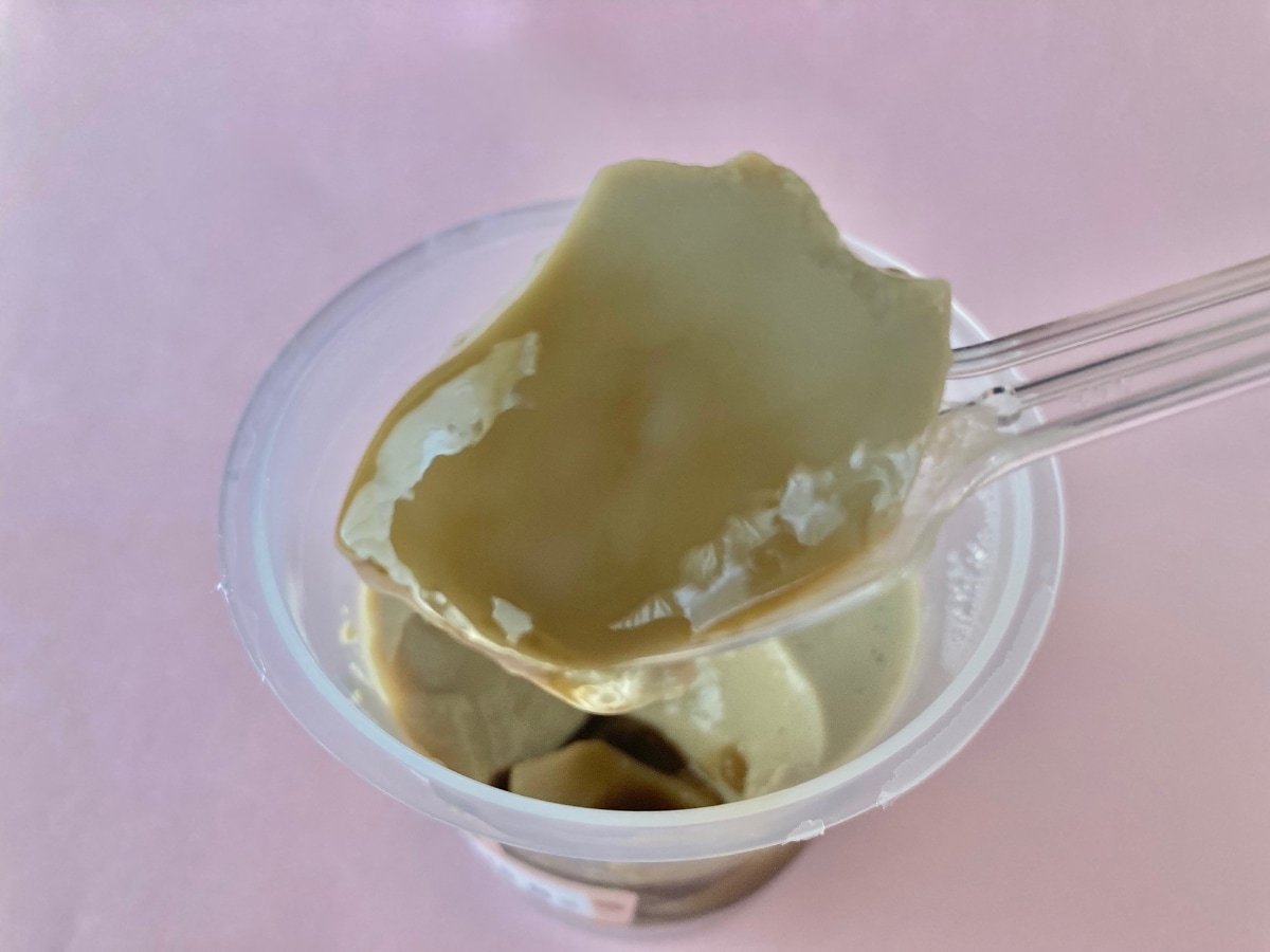 コーヒー味のプリンの下にはカラメルソースのようなものが見えます。