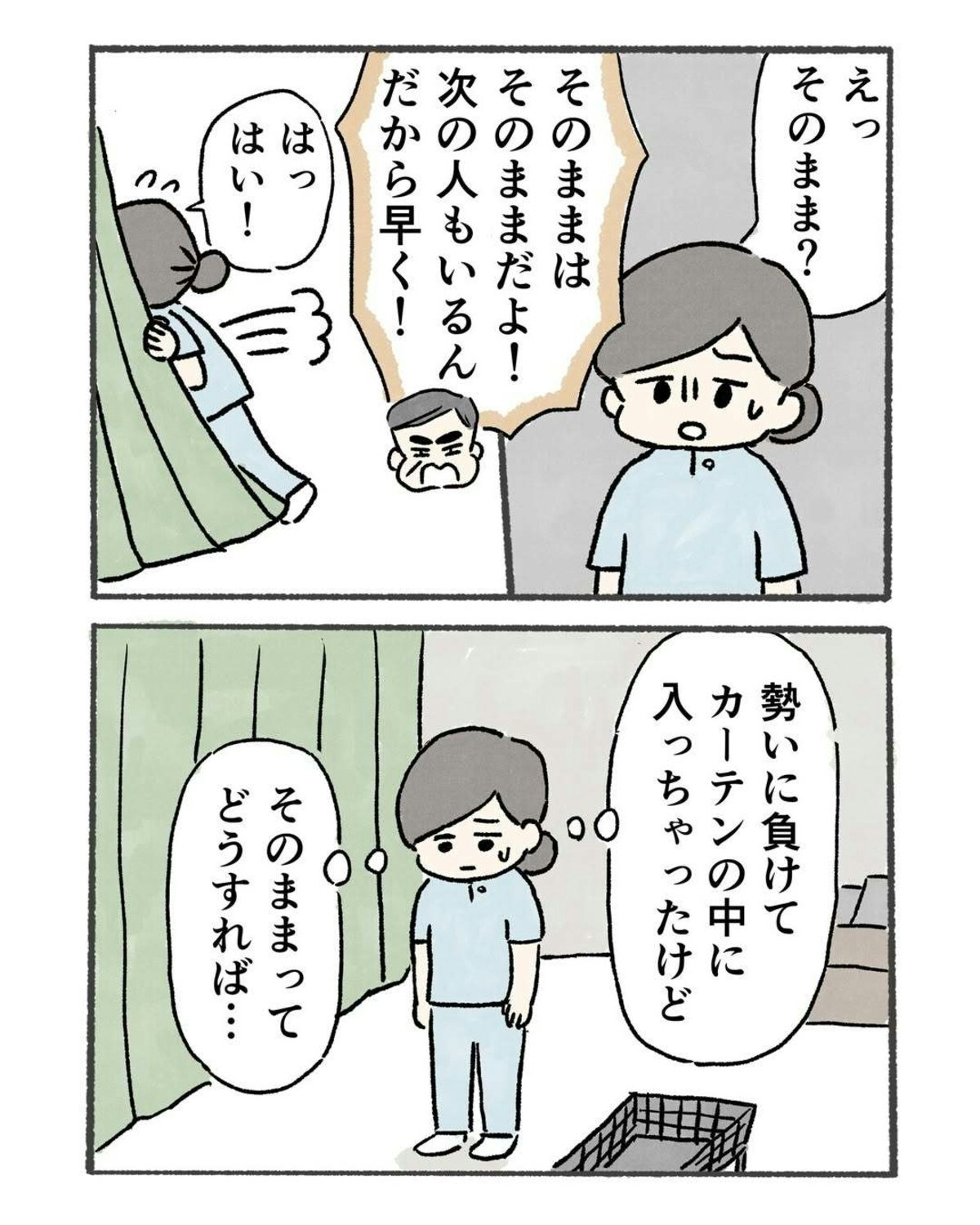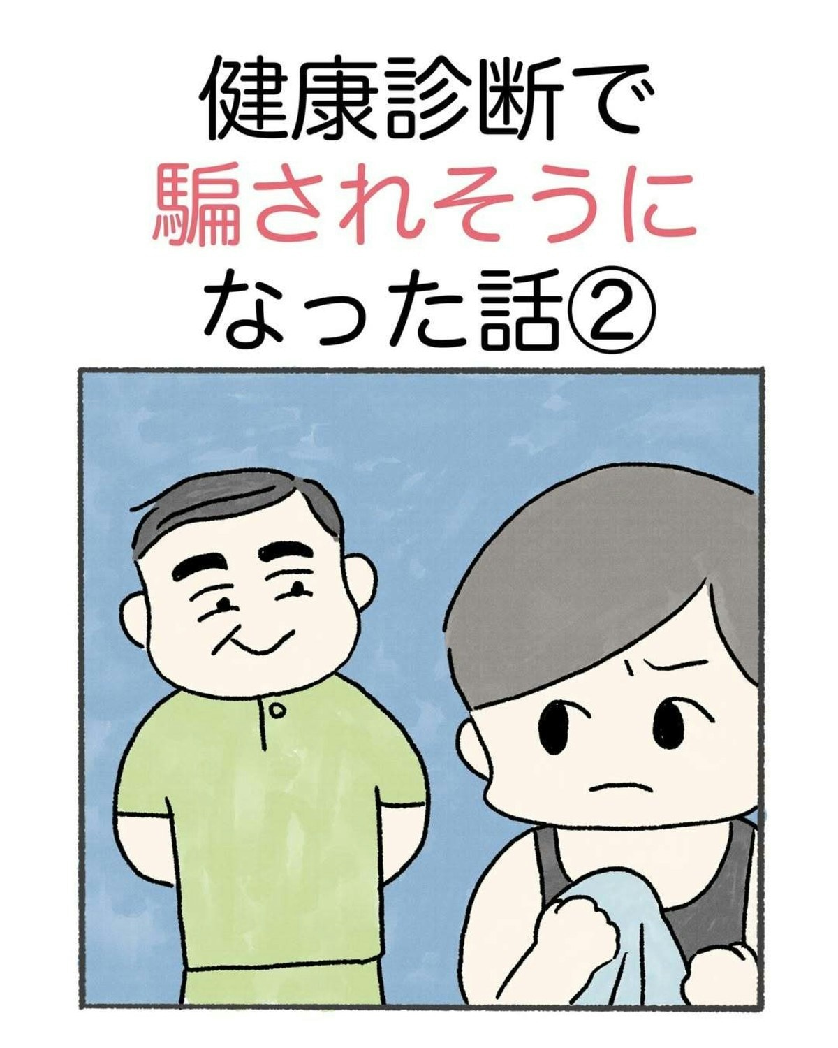会社の健康診断で「着替えを忘れてしまった」と、のむ吉さんは事情を説明します。しかし、着替えを貸してくれることはありません。それどころか、服を脱ぐようにと言われ、困惑をします。