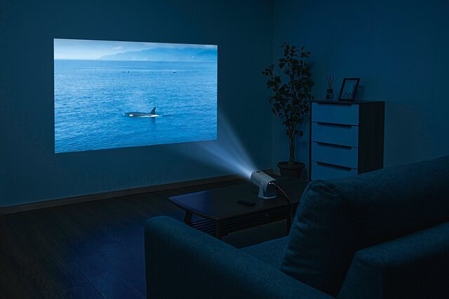 サイズとしては片手で移動が可能な大きさで、本体重量は約630gと軽量。コンパクトなプロジェクターにもかかわらず、明るさは110ANSIルーメンで、最大120インチの大画面投影にも対応しています。