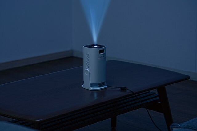 本体とスタンド一体型のため面倒な設置作業がなく、見たい場所においてすぐに投影できるのがポイント。