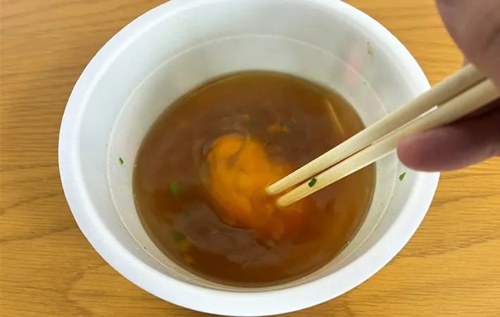 むしろ市販の茶碗蒸しよりもダシの風味が濃く、『日清のどん兵衛 きつねうどん』ならではの甘みとコクが、卵にしっかりと染み込んでいて、とてもおいしかったです!
