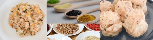 「潤い香味焼売」は、国産豚ウデ肉(肩肉)を100パーセント使用し、からだ潤う薬膳焼売に仕上げた商品。豚ウデ肉は、鉄分・ビタミンB群が豊富で、薬膳的には「気 血を補い、疲労回復や貧血予防」に役立つと言われている。