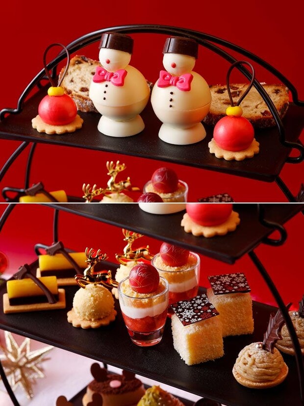 そのほかにも、オーナメントのような「ラズベリーレアチーズケーキ」や、トナカイをイメージした「プラリネクリーム」など、12種類もの多彩なスイーツが勢揃い。