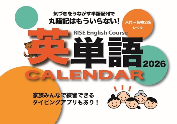 「RISE English Course 英単語カレンダー2026」は、毎日ながめるだけで英単語を楽しく学べる学習カレンダーだ。