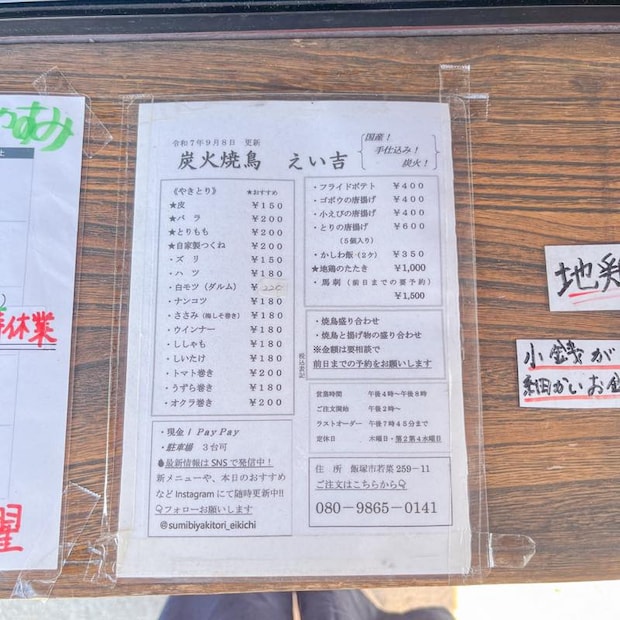今回ご紹介するのは、飯塚市若菜、みそラーメンポンポン亭若菜店の隣にある「炭火焼鳥えい吉」。