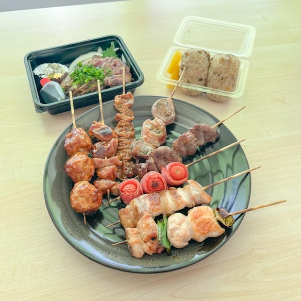 今回は店主さんおすすめの焼鳥8種と、地鶏のたたき、かしわ飯を持ち帰りいただきました。