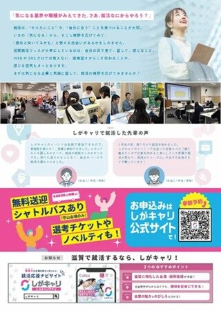 また「公務員から見た滋賀で働く魅力の紹介コーナー」も設けており、学生が民間企業とあわせて現役公務員にも直接相談できるようにし、幅広いキャリアの可能性に触れられる機会を提供する。