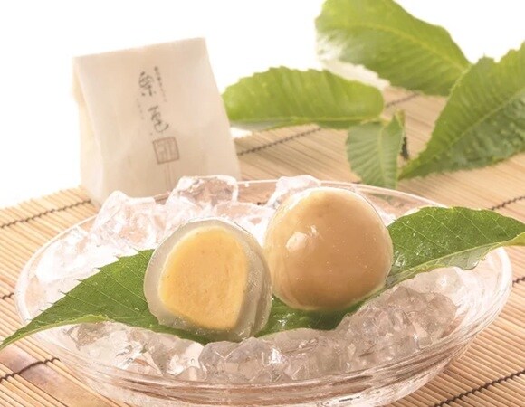 栗きんとんを葛で包んだもっちり食感の和菓子で、冷やして食べると一層おいしく味わえるという。このほか、栗を使った羊羹やカステラ、創作菓子など各和菓子店の自慢の逸品も並ぶ。