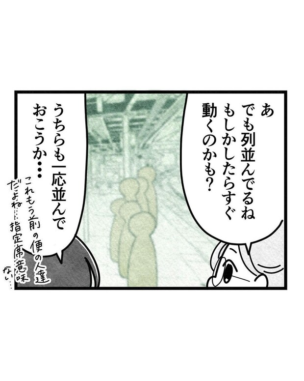 列が並んでいたので、もう少しで動くのかもと思い、並ぼうとする2人。