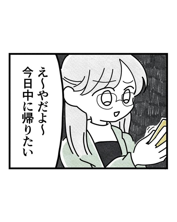 運転再開の目途がたたない新幹線。寒い中2時間も待たされて、さほさんの生理痛も酷くなってきました。もう1泊しようと、ふうかさんに提案しますが、即答で「やだよ~」と却下されてしまいます。これは一悶着ありそうな予感ですね。