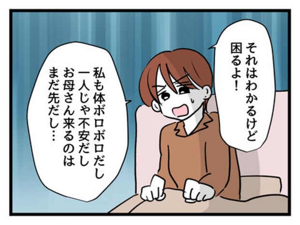 りょうじさんがお葬式でいなくなったら自分と赤ちゃんのお世話は誰がするのかと、そのことで頭がいっぱいのキリコさん。挙句の果てに義父が亡くなるタイミングが悪い、お葬式が終わったらすぐに帰ってきて、とまでいい始めました。さすがにこれにはりょうじさんも黙っていられず…