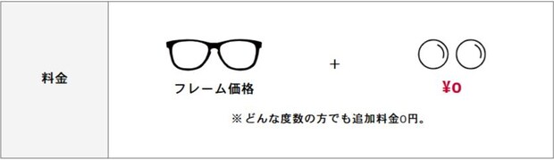 「どんな度数でも追加料金ゼロ円」の価格設定: 他社も一式価格をうたっていますが、OWNDAYSはフレーム+レンズ一式が7,000円からという圧倒的コスパ!さらに、強度近視・遠近両用・非球面1.74レンズまですべて標準価格内なんです。
