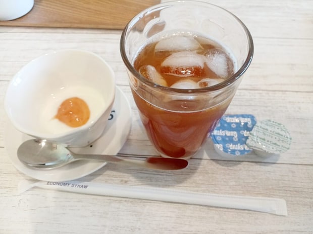 食後はアイスティーとヨーグルトです。食後のデザートまでつくのは嬉しいですね。