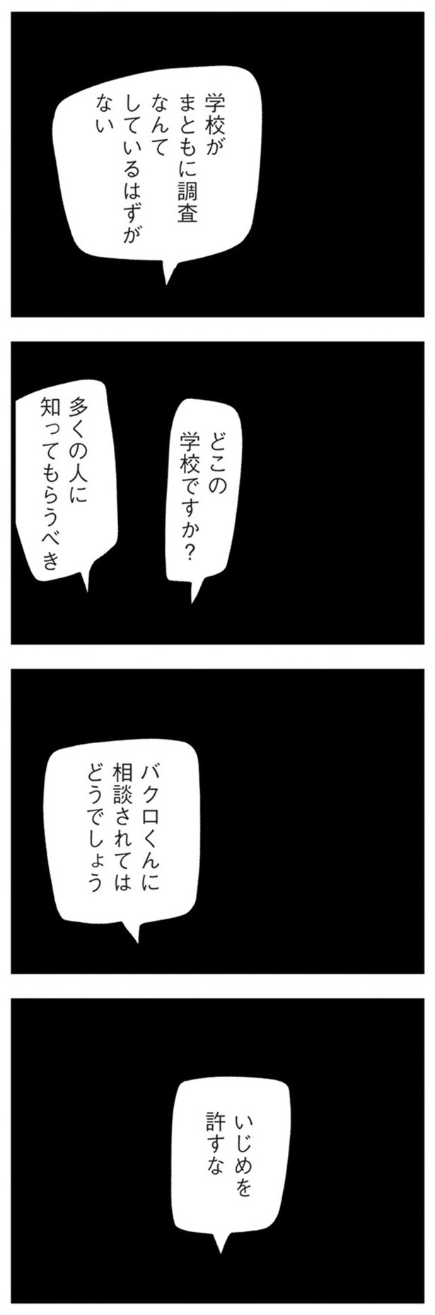 本当の“加害者”は誰なのか?いじめ問題のタブーに切り込んだセミフィクション「娘はいじめなんてやってない」(著書・しろやぎ秋吾)から全17回連載でお届け。今回は第16回となる。