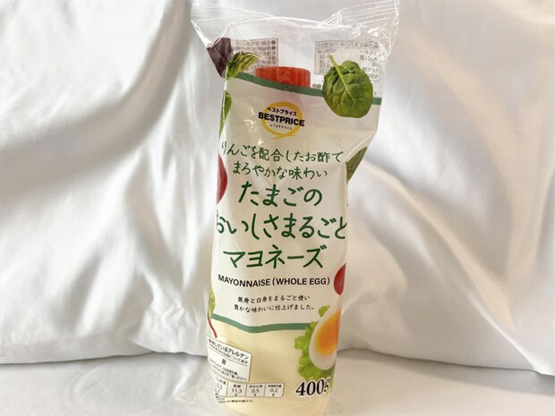 「トップバリュベストプライス たまごのおいしさまるごとマヨネーズ 400g」(税込267.84円)は、黄身と白身を使い香り豊かなお酢でまろやかに仕上げたマヨネーズ。こだわりが特にない人は価格重視でトップバリュを選ぶのが正解!