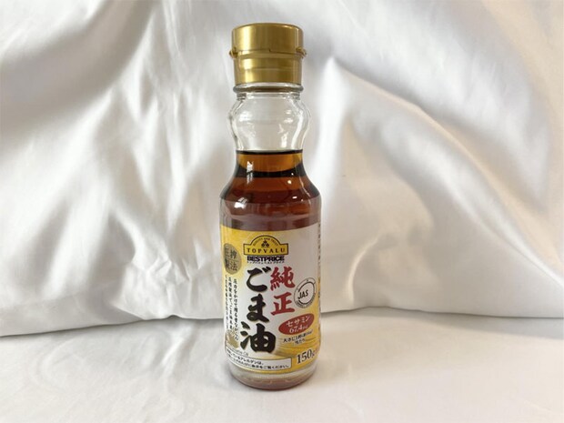 「トップバリュベストプライス 純正ごま油 150g」(税込235.44円)は、圧力だけで搾る圧搾製法でごまの風味と香りをいかしたごま油。400gは税込537.84円で販売されています。