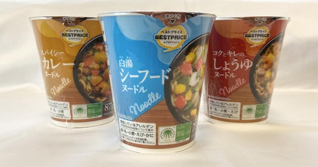 トップバリュのカップ麺類はプロパーで税込116.64円なので、いつでもセール価格のようなお買い得プライス。非常食としてストックしておくのもおすすめです。味も類似品に負けないおいしさ!