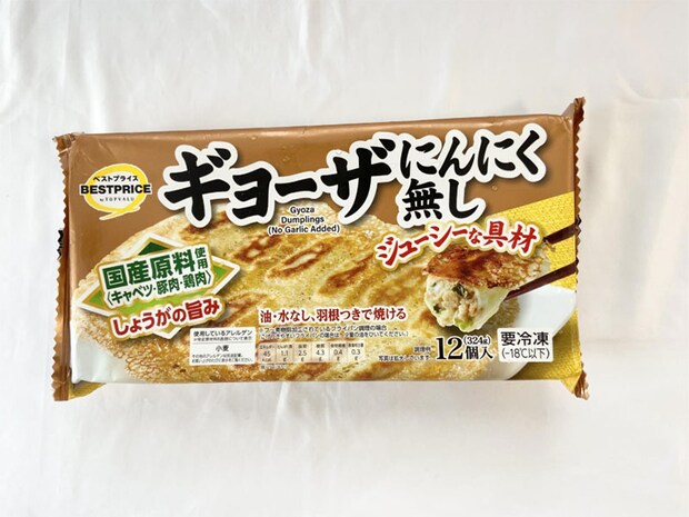 「トップバリュベストプライス ギョーザ にんにく無し 12個入(324g)」(税込192.24円)は、にんにくが入っていないのでお弁当にも使える冷凍餃子。子どもでも食べやすくておすすめです。