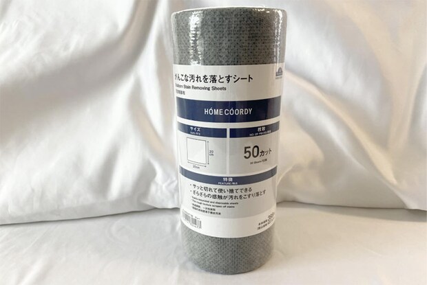 「HOME COORDY がんこな汚れを落とすシート グレー 50枚」(税込330円)は、ざらっとした感触が汚れをこすり落とし、サッと切れて使い捨て出来るお掃除アイテム。シート1枚のサイズは20cm×20cm 。食器や調理器具の予洗いにもおすすめです。