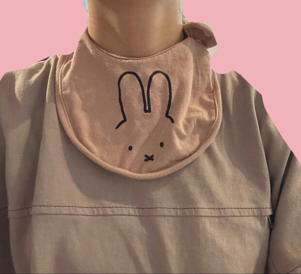 娘さんはスタイを拒否したので、まう〜さんは仕方なく「じゃあいいよ!」と言い、代わりに付けて見せたそう。それでも娘さんはスタイを付けてくれませんでした。その後まう~さんは、うっかりスタイをしたまま、職場にたどり着いてしまったのです。しかし、よく見ると、かわいらしいスタイと服の色が合っていて、ちょっとおしゃれに見えるかも。