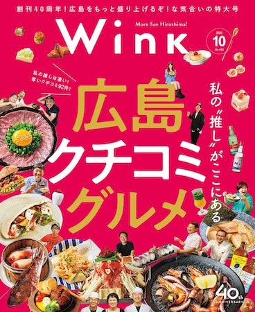 創刊40年を迎える広島県地元密着メディア「Wink」の、2025年10月号は40周年記念特大号。タウン情報誌から始まり、地域とともに歩み培ってきた媒体力が幅広い世代から支持されている。「Wink」の初めての大型主催イベント「Hopping Market by Wink」へ出かけてみては。