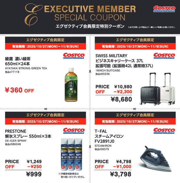 コストコではエグゼクティブ会員向けに特別割引クーポンが用意されています。クーポン情報はエグゼクティブ会員ではなくとも、公式サイトからチェック可能です。