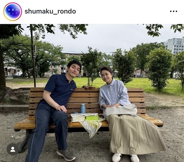 この日、公式Instagramは「第二話の撮影裏をお届け!樹とこはるの昼食シーン 風が強い中での撮影でしたがそんなことを感じさせない爽やかな笑顔のお二人」というコメントとともに写真を投稿。草なぎと風吹が、ベンチでお弁当を食べるオフショットを公開した。