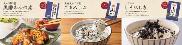 そのほか、大戸屋特製「黒酢あんの素」や、混ぜて炊くだけで五穀ご飯が作れる「もちもち五穀ご飯」など、“おうちで大戸屋”を楽しめる人気のオリジナル商品も提供する。
